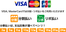 クレジットカード会社により分割可能回数と手数料が異なります。